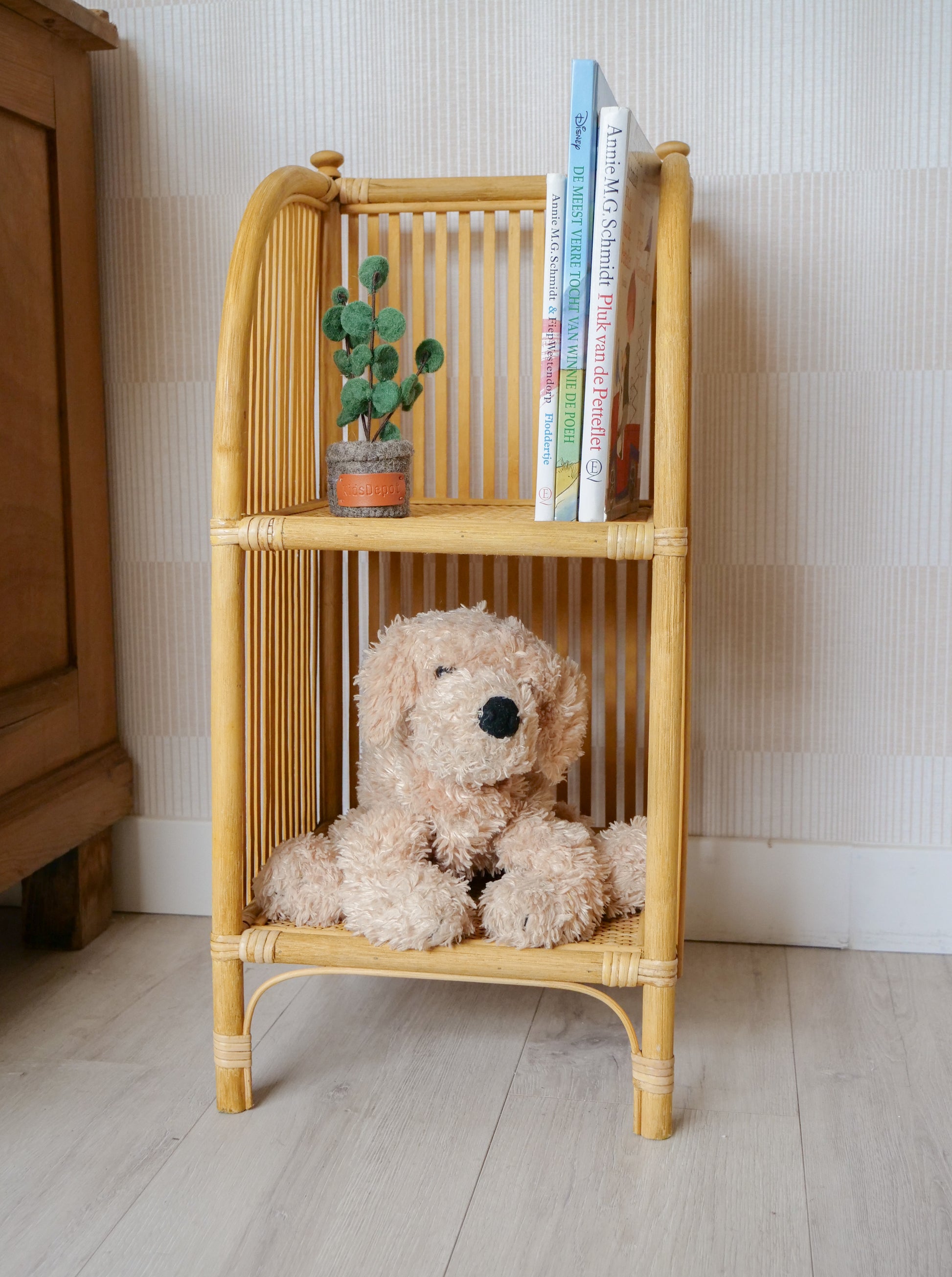 Even wat extra ruimte nodig? De Kady is ideaal! Dit compacte rekje past moeiteloos in elke kleine hoek en biedt toch verrassend veel opbergruimte. Gemaakt van stijlvol rotan en voorzien van 2 stevige legplanken – perfect voor boeken, speelgoed of decoratie. Praktisch én sfeervol!
