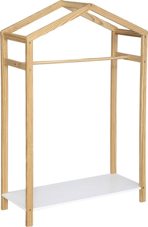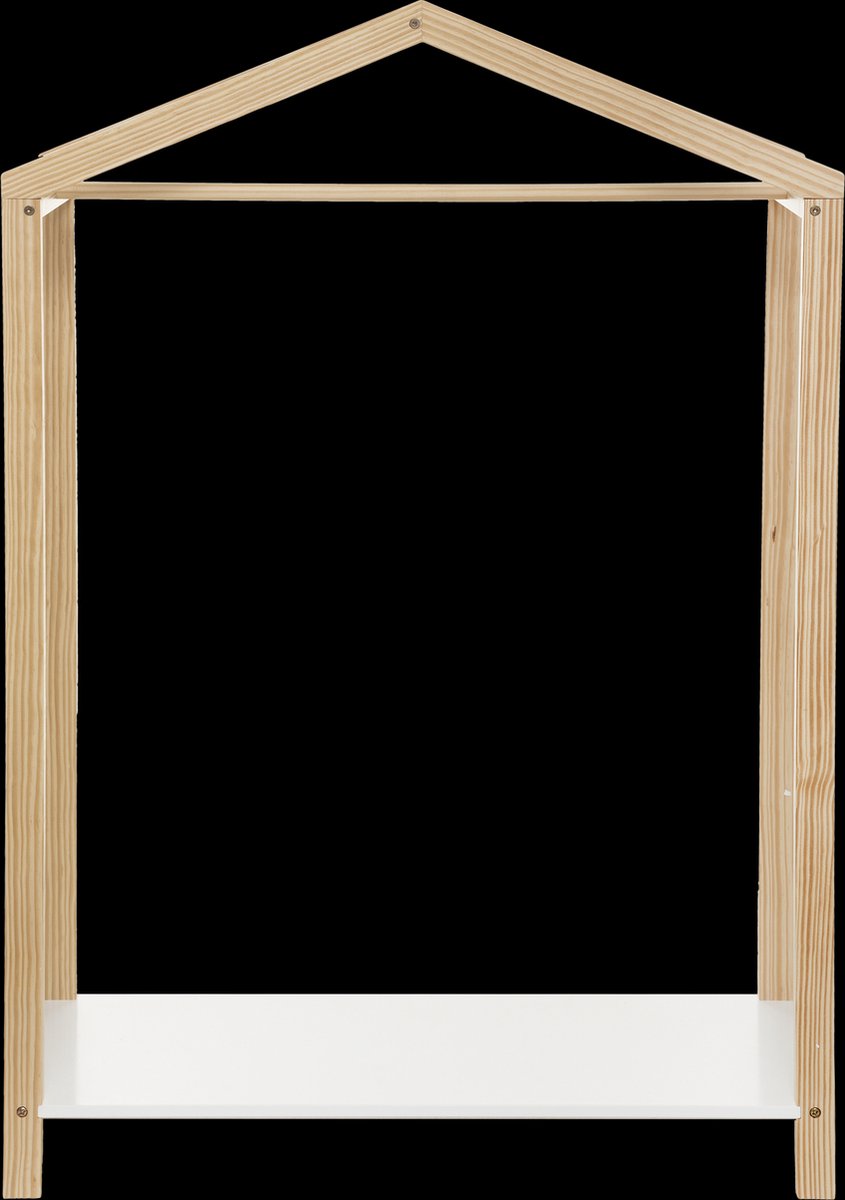 Deze open garderobe gemaakt van dennenhout is ideaal om de kinderkamer mee in te richten en biedt slimme opbergmogelijkheden in de allerkleinste ruimtes. Met zijn verfijnde en originele uitstraling, zal dit een moderne touch aan je kamer geven. Let ook op het huisvormige ontwerp dat een avontuurlijke stijl zal geven aan de kamer van elk kind.