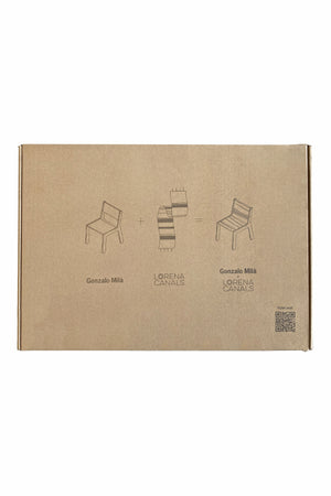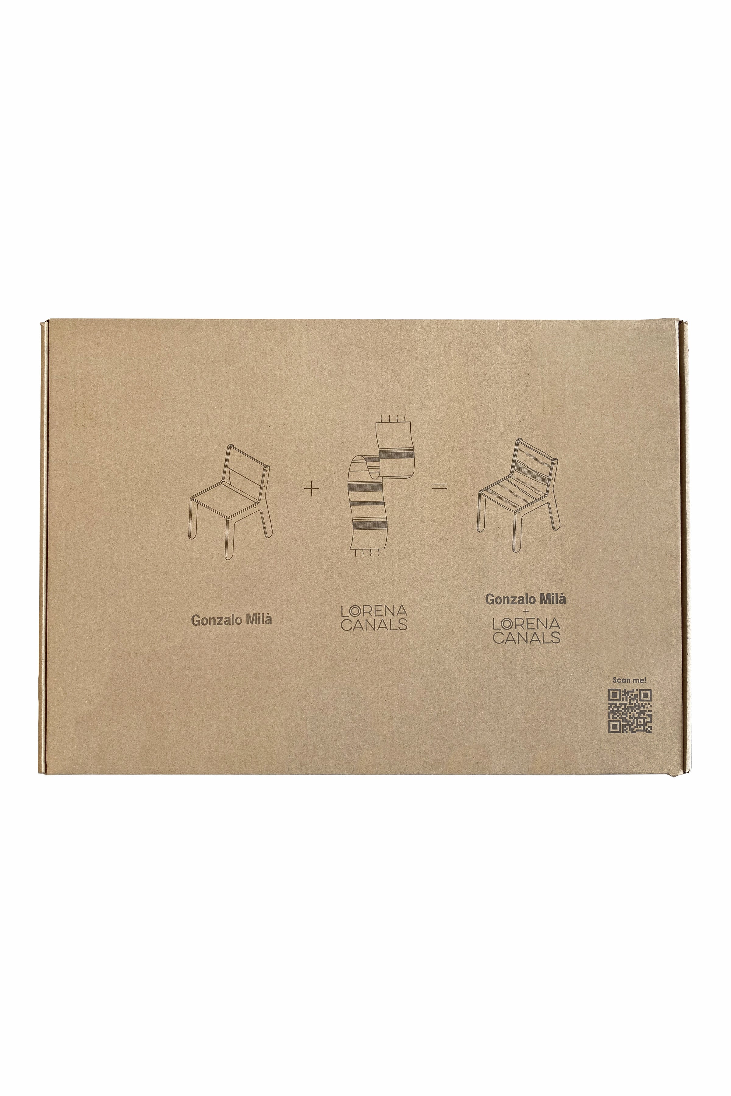 Een eenvoudig te monteren en handgemaakte stoel van natuurlijk berkenmultiplex, ontworpen door Gonzalo Milà x Lorena Canals. Het bevat een afneembare katoenen canvas hoes voor comfort en stijl, bevestigd met knopen.