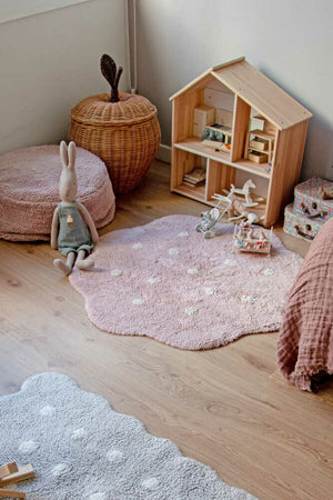 Een schattige miniversie van ons klassieke ronde Biscuit-deken. Wasbaar rond minikleed in Vintage nude kleur, met contrasterende stippen in naturel kleur. Het kleed heeft de karakteristieke afgeronde hoeken van een koekje.