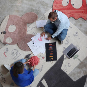 Passend bij de handgeknoopte sierkussens.voor de kinderkamer van Woolable by Lorena Canals zijn er ook passende vloerkleden.