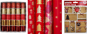 Luxe kerst inpak set Classic X-mas - 4 Luxe rollen 150 x 70 cm - 4 lintjes Cadeaupapier - 2 Gifttags 2 x 8 stuks