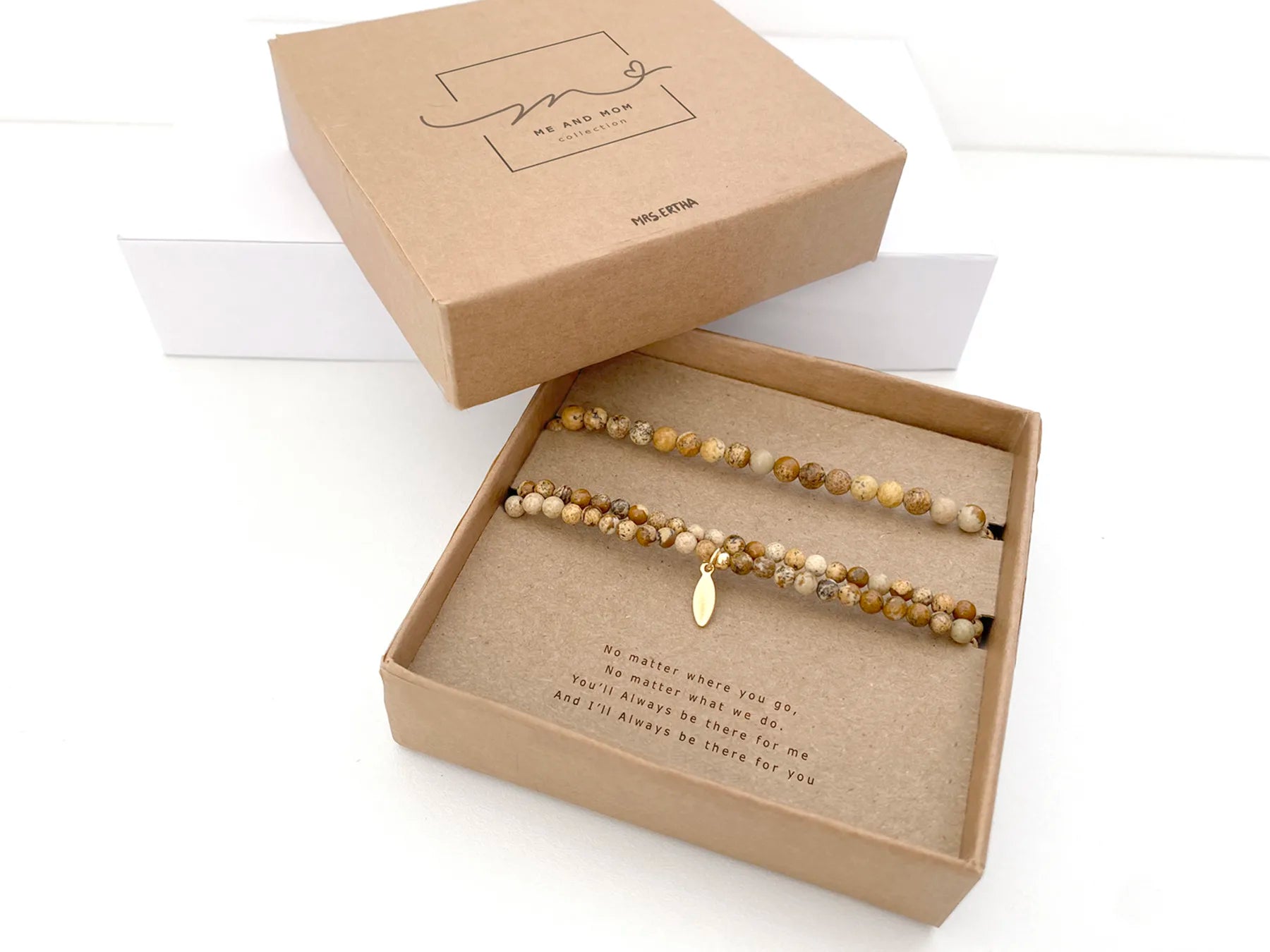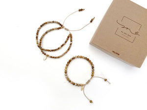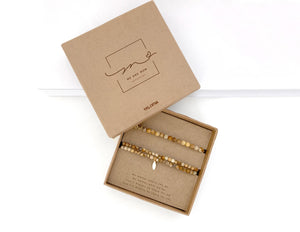 Me & Mom Collection bestaat uit 7 armbanden van natuursteen, elk met een eigen betekenis. Met hun 24K vergulde onderdelen zijn het unieke stukken die een heel speciale missie met zich meedragen. Moeders en kinderen kunnen nu dezelfde armband dragen en samen dezelfde boodschap uitdragen.