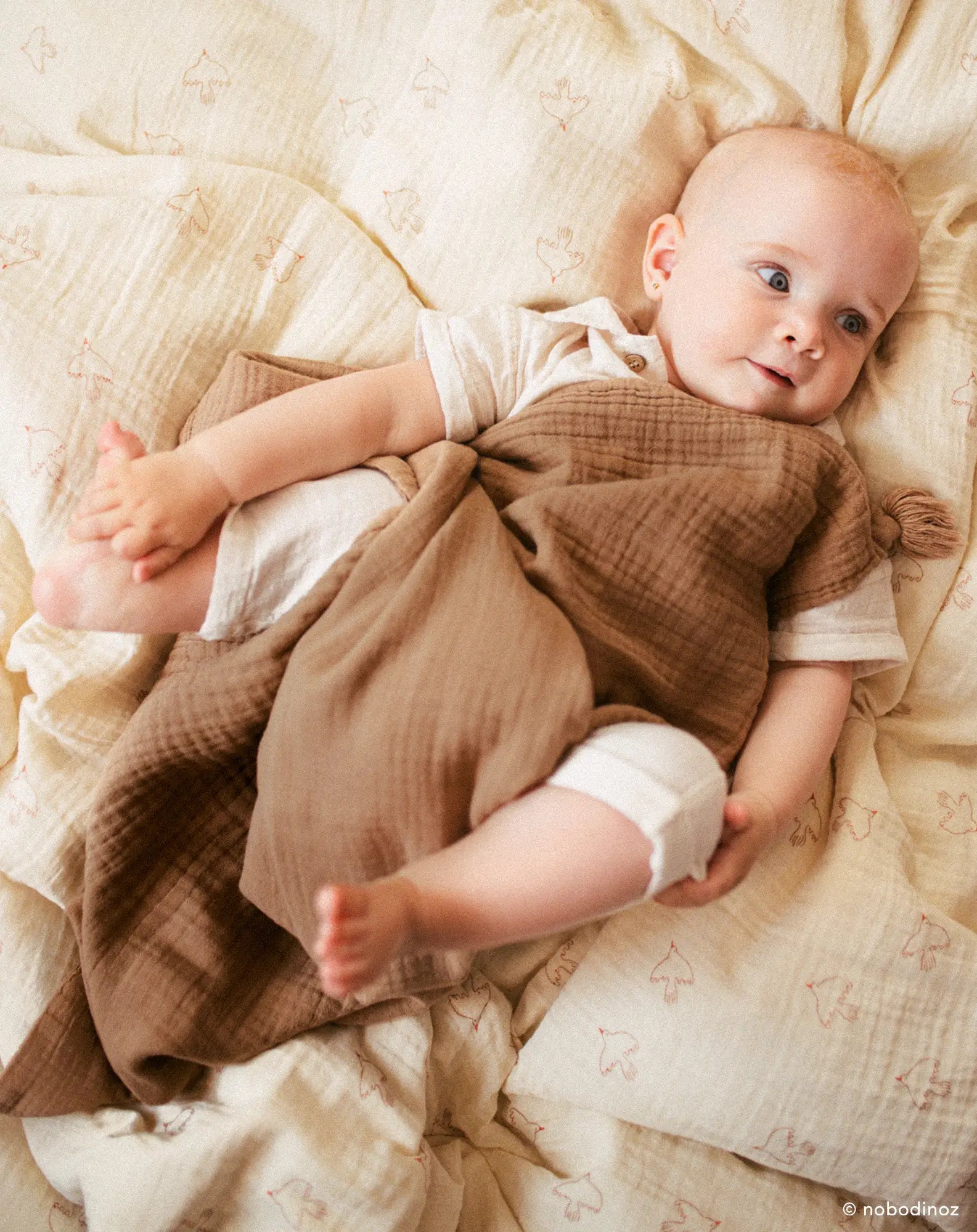 Nobodinoz Wabi-Sabi Dekbedovertrek van gewassen katoen 150x200cm - Brown Hoshi Birds