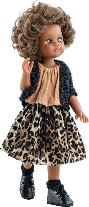 Paola Reina Pop Amigas Articulada Nora - Donker meisje met kort krullend bruin haar, groene ogen en sproeten (32cm)