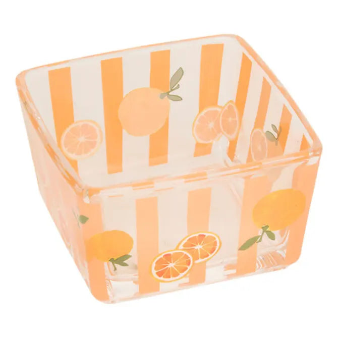 Het tapaskommetje met lepeltje brengt kleur en sfeer op tafel. De vrolijke sinaasappelprint en het stijlvolle glazen design zorgen voor een frisse, zomerse uitstraling. Perfect voor tapas, dips, sausjes of kleine snacks. Het bijpassende lepeltje en houten onderzetter maken het geheel compleet en extra praktisch. 🍊✨