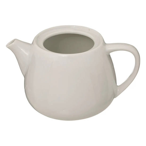 Theepot met een inhoud van 1000 ml/1 liter, gemaakt van hoogwaardig keramiek, in de kleur wit. De theepot heeft een afsluitbare deksel, een handvat en een korte schenktuit.