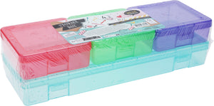 Houd al je spullen netjes geordend met deze set van 4 transparante opbergboxen in vrolijke kleuren! Ideaal voor knutselspullen, sieraden, kantoorartikelen en meer.
