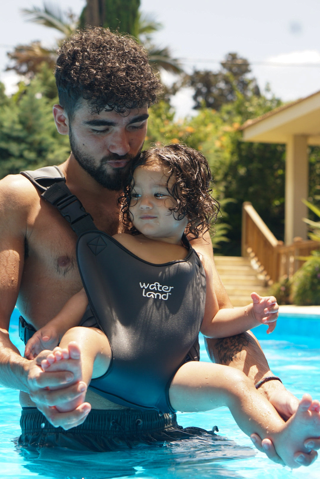 De WaterLand draagzak is een revolutionair product dat ontworpen is om wateravonturen met je baby veilig, comfortabel en aangenaam te maken.