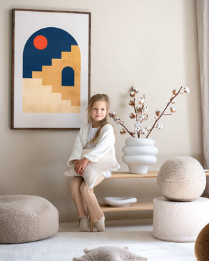 De Wigiwama poef is een stijlvol en functioneel meubelstuk dat meerdere doelen dient, zoals een voetensteun of een extra zitplek. De poef is gemaakt van hoogwaardige, zachte teddystof en biedt zijn jonge eigenaar een onvergetelijke tactiele ervaring dankzij de luxueuze textuur.